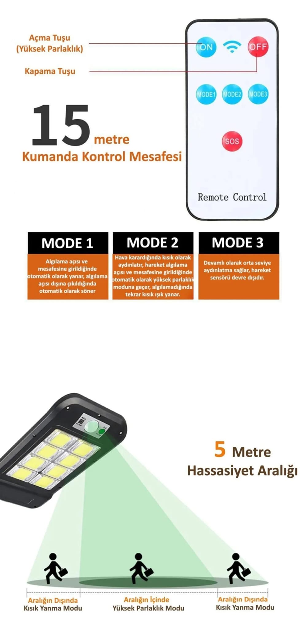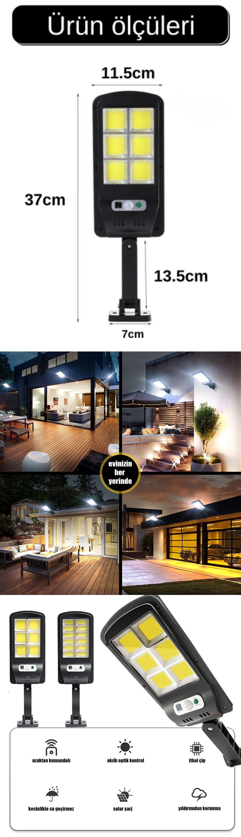 1 Adet GÜNEŞ ENERJİLİ SOKAK LAMBASI -